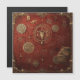 An ornate emblem glows in gold against a textured crimson backdrop, surrounded by arcane symbols and cryptic inscriptions.