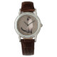 Watch in a digital portrait of a seal point Siamese cat - cream, taupe and chocolate brown on a taupe tan background
