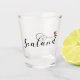 Shot glass with stylish scripted design features the flag of the Principality of Sealand in a heart.