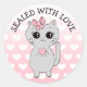 Sealed with Love Cartoon Cat with Bow Heart Classic Round Sticker