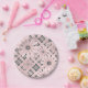 Seamless abstract modern chequered plaid floral pink flowers grey cartoon