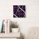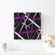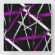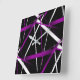 Seamless Abstract Purple and White Lines On Black Square Wall Clock