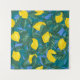 Seamless background with lemons and leaves. Citrus tropical fruits hand drawn on a bright blue background. Botanical vintage illustration
