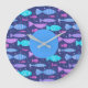 Seamless boho flat pattern with doodle fishes and bubbles floating to the right on blue background. Underwater lagoon world. Child texture for fabrics, wallpapers and your creativity