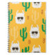 Seamless cartoon llama and cactus pattern in brigh notebook