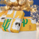 Seamless cartoon llama and cactus pattern in bright colours.