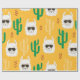 Seamless cartoon llama and cactus pattern in brigh wrapping paper