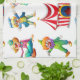 Seamless clowns and circus tent tea towel