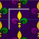 Fabric with a seamless pattern with a fleur-de-lis; yellow, purple, and green fleur-de-lis in the colours of the New Orleans Mardi Gras celebration