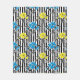 Seamless floral blue yellow flowers grey leaves striped black white pattern