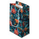 A beautiful gift bag with a seamless paper floral pattern against a blue background.