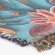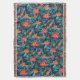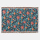 A beautiful throw blanket with a seamless paper floral pattern against a blue background.