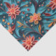 A beautiful tissue paper with a seamless paper floral pattern against a blue background.