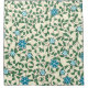 Seamless floral pattern with blue flowers, green leaves, and twisting vines on a light beige background. The design is lively and decorative.