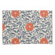 Seamless floral pattern with vibrant orange flowers and navy blue leaves on a beige background, creating an ornate, symmetrical design.