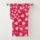 Seamless LOVE Valentines Day pink red white scratc Bath Towel Set