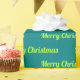 Seamless Merry Christmas Texts on Teal Green Wrapping Paper