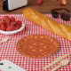 Seamless mosaic abstract kaleidoscope orange trian paper plate