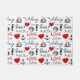 Seamless nautical pattern with nautical symbols (sailing boat, anchor, waves, seahorse, seashell) and red hearts decoration with text design on white background