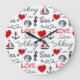 Seamless nautical pattern with nautical symbols (sailing boat, anchor, waves, seahorse, seashell) and red hearts decoration with text design on white background