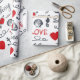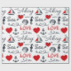 Seamless nautical pattern with nautical symbols (sailing boat, anchor, waves, seahorse, seashell) and red hearts decoration with text design on white background