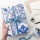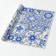 Seamless patchwork tile with Victorian motives. Majolica pottery tile, blue and white azulejo, original traditional Portuguese and Spain decor. Vintage