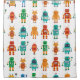 Seamless pattern from colourful retro robots in a shower curtain