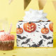 This Halloween-themed pattern features smiling pumpkins, flying witches on broomsticks, black cats, bats, and full moons. Against a light background, these festive elements create a playful and seasonal design. Perfect for spooky crafts or decorations!