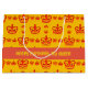 This amazing seamless pattern features king's crowns of red colour. A beautiful gift bag for your gifts. Good for any party or holiday. You can change or delete the template text on both sides at once. To change the font, the colour of the background, and the colour, location, size, etc. of the stripe, please, click the "Personalise" or the "Edit Design" (as the case may be) button of the blue colour to the right of the product image. Just be creative and be happy!