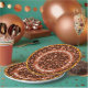 A rain of the American football balls of brown colour against the light colour background. Funny, positive paper plate for your event. Customisable. You can change two template texts independantly. If you want to SWITCH OFF/ON a round ring or both of them, or change something, do the following: click the "Personalise" or the "Edit Design" (as the case may be) button of the blue colour to the right of the product image. It will transfer you to the "Designer Tool" window. Click the "Layers" menu to the left, choose "Oval", click the small eye icon. You can switch on/off everything, add more text, geometric elements, change the colour of the background, change fonts, and do whatever you want. Just be creative and be happy!