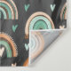 Seamless pattern of hand drawn hearts and boho rainbow in pastel mint and neutral beige colours on dark background