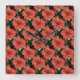 Seamless pattern Tropical red flowers green leaves Square Wall Clock