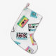 Seamless pattern with audio tapes in retro 80s sty small christmas stocking