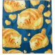 Seamless pattern with cute polygonal cartoon cats, gold cat on blue background