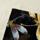 Seamless pattern with gold, jewellery, shiny dragonflies with detailed, sparkling wings on black background. Gold dragonfly.