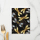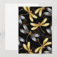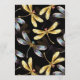 Seamless pattern with gold, jewellery, shiny dragonflies with detailed, sparkling wings on black background. Gold dragonfly.