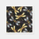 Seamless pattern with gold, jewellery, shiny dragonflies with detailed, sparkling wings on black background. Gold dragonfly.