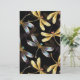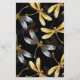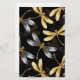 Seamless pattern with gold, jewellery, shiny dragonflies with detailed, sparkling wings on black background. Gold dragonfly.