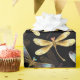 Seamless pattern with gold, jewellery, shiny dragonflies with detailed, sparkling wings on black background. Gold dragonfly.