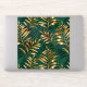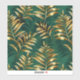 Seamless pattern of gold, jewelry, shiny fern branches and leaves on green, woodland, textured background. Golden fern.