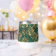 Seamless pattern of gold, jewelry, shiny fern branches and leaves on green, woodland, textured background. Golden fern.