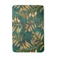 Seamless pattern of gold, jewelry, shiny fern branches and leaves on green, woodland, textured background. Golden fern.