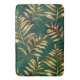 Seamless pattern of gold, jewelry, shiny fern branches and leaves on green, woodland, textured background. Golden fern.
