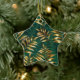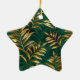 Seamless pattern of gold, jewelry, shiny fern branches and leaves on green, woodland, textured background. Golden fern.