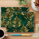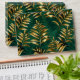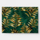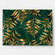Seamless pattern of gold, jewelry, shiny fern branches and leaves on green, woodland, textured background. Golden fern.