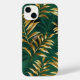 Seamless pattern of gold, jewelry, shiny fern branches and leaves on green, woodland, textured background. Golden fern.