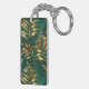 Seamless pattern of gold, jewelry, shiny fern branches and leaves on green, woodland, textured background. Golden fern.