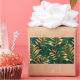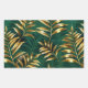 Seamless pattern of gold, jewelry, shiny fern branches and leaves on green, woodland, textured background. Golden fern.