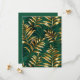 Seamless pattern of gold, jewelry, shiny fern branches and leaves on green, woodland, textured background. Golden fern.