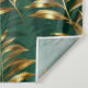 Seamless pattern of gold, jewelry, shiny fern branches and leaves on green, woodland, textured background. Golden fern.